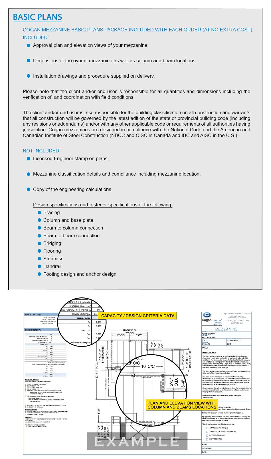 Click here for an example of the Cogan Mezzanine Base Plans package (PDF).