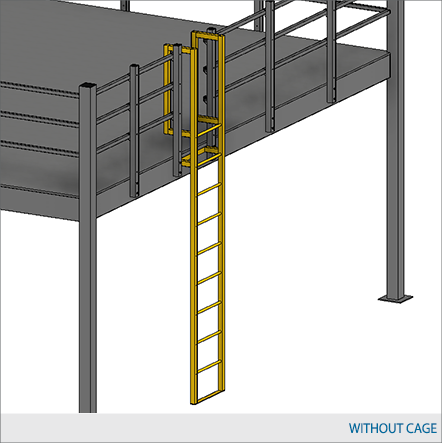 Our standard platform ladders are 24” wide. Optional welded safety cages are available for added fall protection or if required by code. All ladders are sealed in a durable, powder-coated yellow paint finish for maximum visibility.